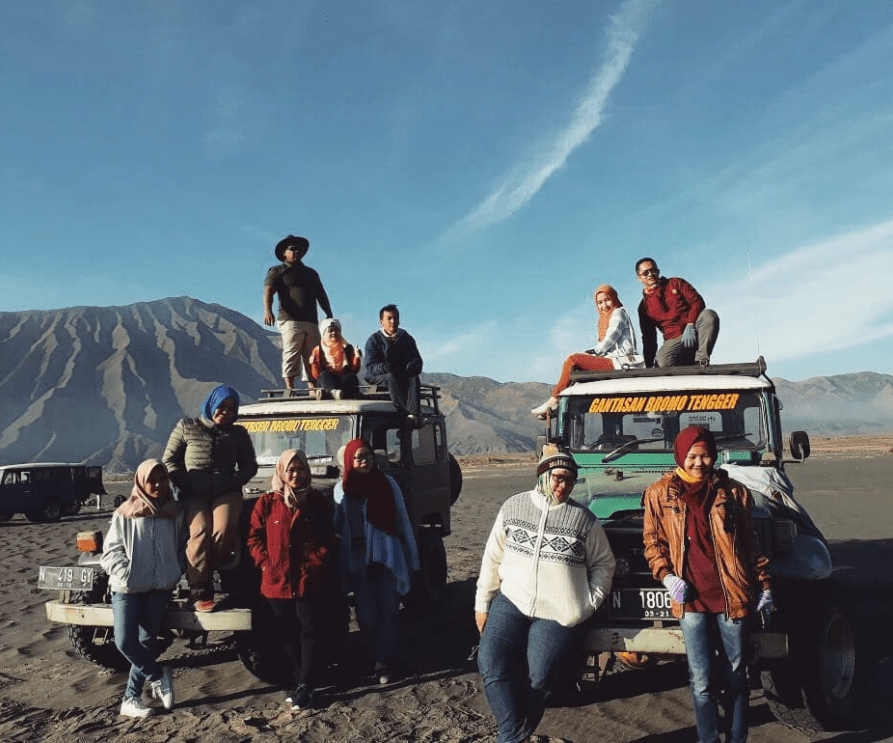 📍 Termasuk: Transport – Tiket masuk domestik Bromo – jeep 4WD – + driver